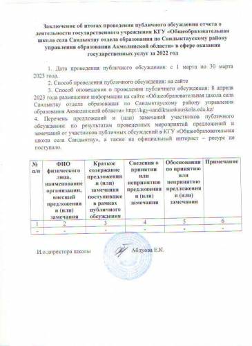 «Общеобразовательная школа села Сандыктау отдела образования по Сандыктаускому району управления образования Акмолинской области»